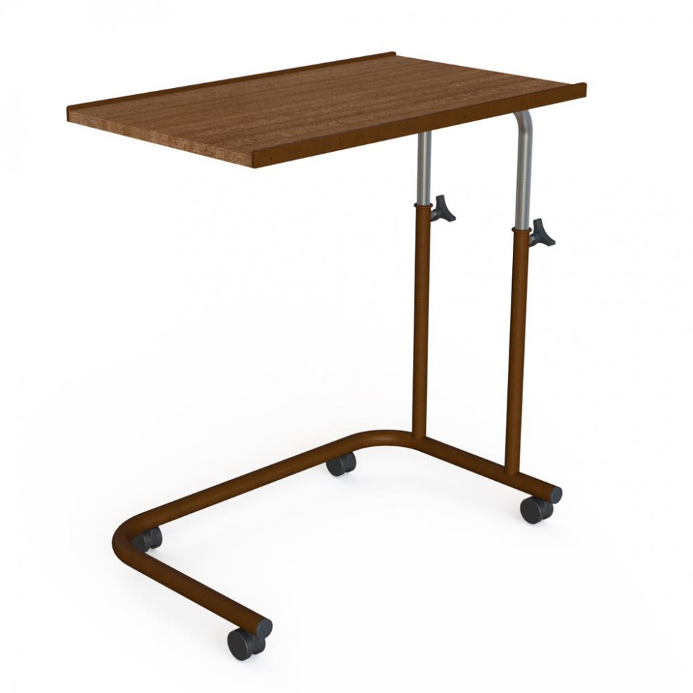 • A mobile height adjustable table. The base can be slid under a bed for the tabletop to be positioned so it can be reached by a person sitting in bed.